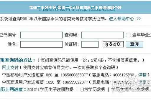 首先和你讲诉一下2中情况, 2中,是很好的省重点,校园不错,师资也很好。 但是2中进去不久会发现,2中很多有钱人,成绩好的,成绩差 的都有,感觉谁脚上都是NIKE,身上AD。 成绩好的很好,他们辛勤刻苦,差的很差,天天就是索泡,上课逃课或者开小差。 这是普通班,但毕竟还是学习好的人多, 2中0班就不说了,最差劲的也得上个2本。 连一,似乎差不多吧,住南昌市去那读书的人也很多,难免也会有些叼儿郎当的人,可学习气氛还是不错的。 师资方面,2中比连一强,2中基本个个都是高级教师,还有的国家批准特级教师。连一不是很清楚。。。 生活方面,2中一般一个星期得花个80左右,这是中等消费(吃喝),菜的味道不错,品种样式也多,寝室类似师大瑶湖大学寝室。6人住,220一年住宿。2中教室寝室都有空调。 连一特狠,菜不好吃,还贵,7块1荤一素,荤肉还超不过3块,住宿8人,上下铺,我觉得不行。 你是南昌市的学生去2中学费很低,一共2000左右一年吧,(前提是考进去,不考进去的话,交3万,免学费) 连一,可能要花5000吧。莲塘本地不一样(不是考进去的话,需花12000一年) 差不多就这些吧。(我是2中毕业的)