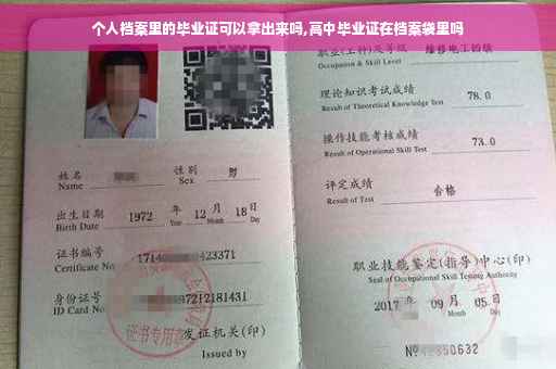 个人档案里的毕业证是可以拿出来的。毕业证是个人保管的证件,个人档案里只存放复印件,如果毕业证原件在个人档案中,可以通过人事档案管理部门,把原件取出,存放复印件即可。因此,个人档案中的毕业证原件是可以拿出来的,只存放复印件就行。