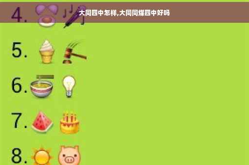 大同同煤四中前几年从教学质量以及管理上都是不错的:尤其是是初中考原同煤一中录取率比较好:但最近几年成绩有点下滑:总而言之同煤四中比起其它学校还是不错的:从每年的入学率到在校学生都是比较高的。所以同煤集团原四中和二中:三中差不多。