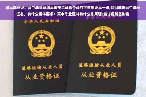 谢谢邀请!高级技工证是这里面含金量最高的,这是国家认可的技术证书,你有他走遍天下不要怕,用人单位抢着要,有一个纪录片《大国工匠》说的就是这个,现在大学生都想考这个证,好就业啊。职高毕业证只是代表你学了一些基础技能,高中毕业证就是证明你是高中文化程度,这个太普遍了没什么大用。