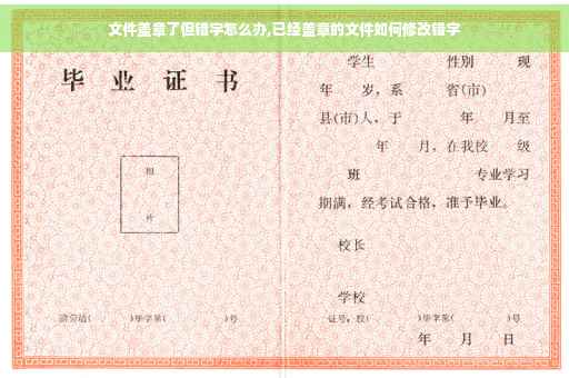 已经盖章的文件,若发现有错别字,该文件废止,决对不能修改错字,文件是有严肃性要求的;