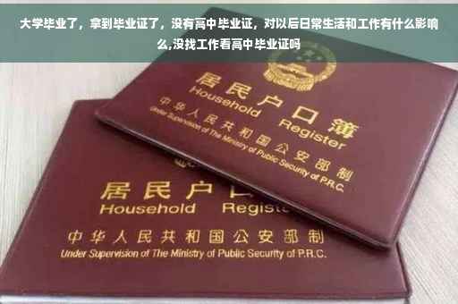 没有什么影响吧,应该。现在出去找工作都看的是大学毕业证。就是在社会上,大学都毕业了,高中毕业当然是不言而喻了。我已经毕业了,没发现哪里要高中毕业证,而不要大学毕业证的。所以你就放心吧