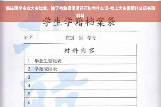 临床医学专业大专毕业,一般都是考助理医师证,然后做相关的工作后在考医师资格证; 据《中华人民共和国执业医师法》及有关规定具有下列条件之一的,可以参加医师资格考试: (一)具有高等学校医学专业本科以上学历,在执业医师指导下,在医疗、预防、保健机构中试用期满一年的; (二)取得执业助理医师执业证书后,具有高等学校医学专科学历,在医疗、预防、保健机构中工作满二年;具有中等专业学校医学专业学历,在医疗、预防、保健机构中工作满五年的。 (三)具有高等学校医学专科学历或者中等专业学校医学专业学历,在执业医师指导下,在医疗、预防、保健机构中试用期满一年的,可以参加执业助理医师资格考试。 以师承方式学习传统医学满三年或者经多年实践医术确有专长的,经县级以上人民政府卫生行政部门确定的传统医学专业组织或者医疗、预防、保健机构考核合格并推荐,可以参加执业医师资格或者执业助理医师资格考试。考试的内容和办法由国务院卫生行政部门另行制定。
