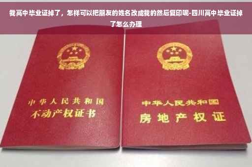 高中毕业证掉了,最好不要把朋友的姓名改成自己的, 高中毕业证书由省教育厅统一管理,省、市两级教育主管部门审查、验印,毕业证书一律于毕业当年颁发,不予补发。但教育局可以办理基础教育学校毕业证书遗失证明,具体程序如下:(1)本人到原毕业学校查核毕业证书存根或出具证明;(2)本人登报声明原证遗失作废;(3)本人持证明、报纸、照片等材料到市教育局基础教育科申报;(4)教育局核发遗失证明。 如果只是出国留学需要,到学校开具高中毕业证明及高中三年学习成绩后,再到公证处做个公证也就可以了。