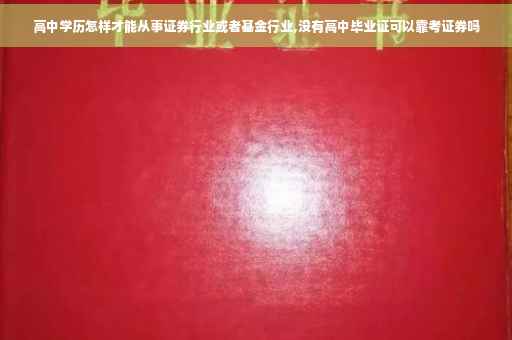 这得需要看你做什么样的岗位,正常情况下,在证券公司总部上班的一般都是本科及以上学历,高中学历恐怕无法胜任。当然也不是说就没有机会从事证券行业了,现在很多证券营业部需要营销人员,只要你认识的客户多,有足够的资金,没有哪家券商会拒绝你的。金融机构全靠资金来支撑,所以不要太在意自己的学历。如果你有很强的营销公关能力,你会比其他高学历人才更有优势,因为在营业部高学历人才没法充分发挥他的优势。当然,前提条件是你需要考上证券从业资格证书,证券从业资格证书的要求就是高中以上学历,正好符合报考要求。