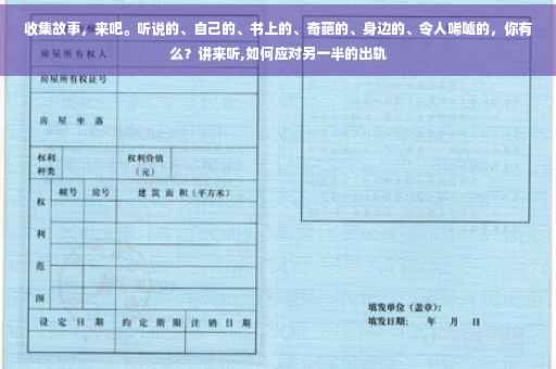 出轨问题越来越多的被大众所谈到,我希望广大遭受出轨困扰的广大朋友们可以共同呼吁,希望督促尽快建立一种机制,使出轨由人们不想转变成不敢。