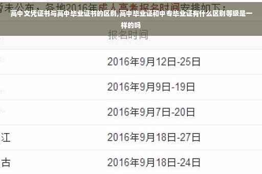 高中毕业证和中专毕业证书在级别上是一样的,在九年制义务教育结束后进行,俩者去区别如下: