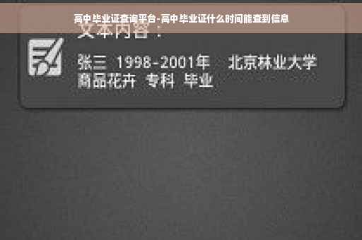 可以登录学信网查高中毕业证的电子版信息。学信网上面不仅有高中毕业证,还有其他一系列学籍学历查询,学历与成绩认证,供我们查询。拓展资料中国高等教育学生信息网 (学信网) 依托中心建立的集高校招生、学籍学历、毕业生就业和国家助学贷款学生个人信息一体化的大型数据仓库,开通了学历查询系统、学籍学历信息管理平台、“阳光高考”信息平台、硕士研究生网上报名和录取检查系统、国家助学贷款学生个人信息系统、学历认证网上办公系统、就业频道等多套电子政务系统和社会信息服务系统。