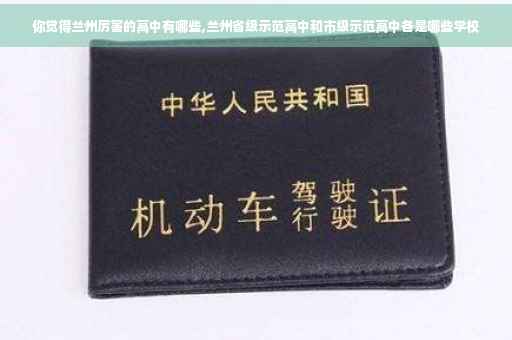 省级:甘肃省三十六所省级示范性高中名单:兰州市第一中学、西北师大附中、兰州三十三中、兰化一中、兰铁一中、兰炼一中、天水一中、金川公司一中、酒泉中学、民乐一中、武威一中、平凉一中、庆阳一中、长庆一中、张掖市第二中学、永昌县第一高级中学、靖远县第一中学、武威南铁路职工子弟中学、静宁县第一中学、兰州市第二中学、酒泉钢铁公司第三中学、天水铁路职工子弟第一中学、甘谷县第一中学、民勤一中、会宁县一中、张掖中学、白银市一中、金昌市一中、定西市一中、泾川县一中、榆中县一中、兰州西北中学、敦煌中学、嘉峪关市一中、高台县一中、白银公司一中;市级的比较多了:兰州二中、五中、民族中学等!