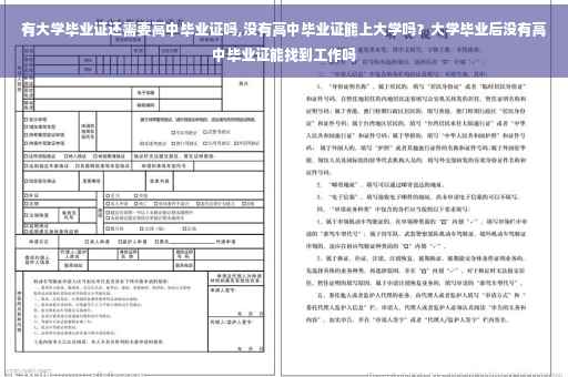 有大学毕业证,一般是不需要高中毕业证了。因为在找工作过程当中都是填写自己的最高学历的。但是并不表示你的高中毕业证就没有用了。高中毕业证是你完成高中阶段的全部学科任务,并考试合格之后,由高中学校给你颁发的学历证明。虽然有了大学毕业证,通常高中毕业证就用不到了,但是也要好好保管,不要随意丢弃。