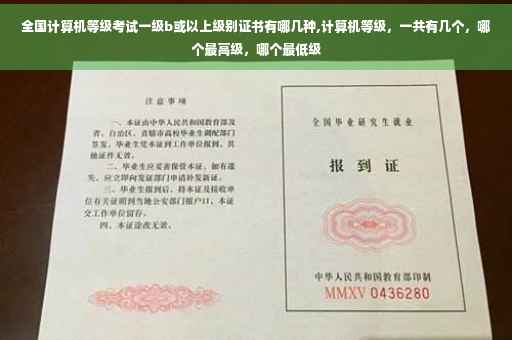 全国计算机等级考试一级b或以上级别证书有二级vb、二级c语言、二级C++、二级Java、二级WEB程序设计、二级VFP、三级PC技术、三级信息管理技术、三级数据库技术、三级网络技术等。 全国计算机等级考试(NationalComputerRankExamination,以下简称NCRE),是经原国家教育委员会(现教育部)批准,由教育部考试中心主办,面向社会,用于考查非计算机专业应试人员计算机应用知识与技能的全国性计算机水平考试体系。