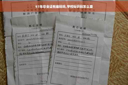 在我国,所发放的具有法律效力的证书均有编号,尤其是毕业证书。97年毕业证书同样有编码,其编码数字有年限、学校代码、专业代码、学号等几组数字组成。院校规模较小的,其毕业证编码也由年限、学籍号(含学校代码、班级序号、学号构成的)组成的。如学籍号为1101(校码)03(班级号)18(学号)的毕业证编号为9711010318。