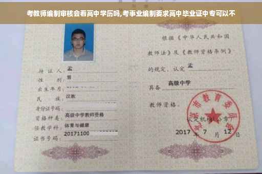 不会看高中学历的!只要你符合教师编制考试的报考条件,就不会审核高中学历,有部分学生确实没有读过高中,有的学生是直接跳级,有的学生就读的是中专,只要拥有大专以上学历,就可以参加教师招聘考试,并且拥有教师资格证。