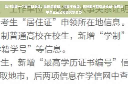 2、其实,现在很多单位对高中及高中以下的人,文凭要求不是很严格,有的公司对高中毕业证可有可无。如果您高中会考没毕业,而还是需要毕业证,您可以去报个职业学校,毕业后他们会有毕业证,有的还是大专毕业证;如果您觉得麻烦,但确实需要,那您也可以去办个假高中毕业证,大专毕业证不建议办假的,因为现在联网,网上是能查到的。