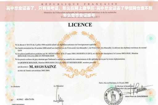 按照我们国家对于学历证书的制度,高中毕业证是无法进行网上查询的,可以找学校开一张毕业证明,效力与毕业证书是一样的,或者重新办理一张。 首先,找学校教务查出你的学籍号,然后让学校帮你开个证明,证明你是该学校的学生并盖教务处的章。 然后,到教务局查出你的毕业号,交钱办毕业证,然后再到学校,填上毕业证上的空白,再找校长盖他的章子和学校的章子。 最后再到教育局盖贴上照片的毕业证钢印。