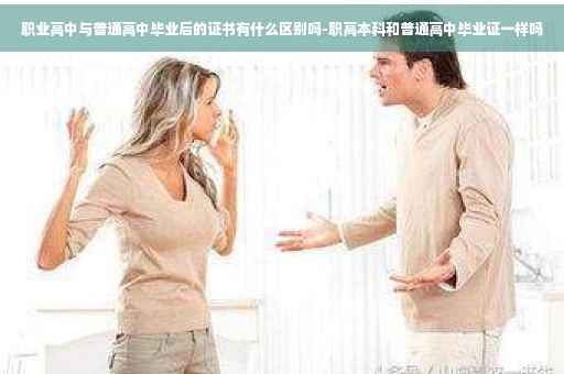 3、发展方向不同职业高中毕业证是证明你已经有了一门的专业技术,可以进入社会工作了。普通高中毕业证是证明你已经有了进入大学的基础知识。职业高级中学/高级职业中学(简称“职业高中”、“职高”)是在改革教育结构的基础上发展起来的中等职业学校,大部分由普通中学改建而成,一般招收初中毕业生,学制基本以3年为主。培养目标与中等专业学校类似。毕业后可以参加对口高考继续升学。职业高中是高中阶段的一部分,一般简称高中或者高中阶段。一般来说职高和普高(普通高中)并无太大区别,只是职业高中,要求技术性和职业性重要。而普高则要求文化性重要、职业高中简称“职高”。普通高中都是按照文理分科,语数外物化生(或政史地)。而职高一般课程设置都是语数外+专业课,在一定程度上类似大学的专业课,但是在社会工作岗位竞争时,职高并没有同专业的大专毕业生抢手。当然,一部分成绩极好,动手能力极强的是例外,但是这部分学生毕竟只是少数。