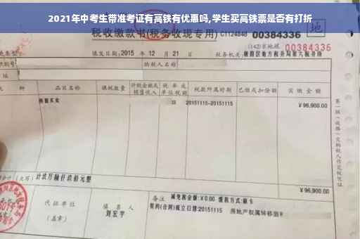 2021年中考生带准考证乘坐高铁购买高铁车票没有优惠。现有的可享受火车票优惠票价的有两种人,在校就读的高校学生,凭高校颁发的有效学生证购买火车票半价优惠,还有即将去高校报到上学的准大学生,凭高校录取通知书,购买火车票时给予半价优惠。儿童乘坐火车凭本人身份证或户口本购买火车票半价优惠。