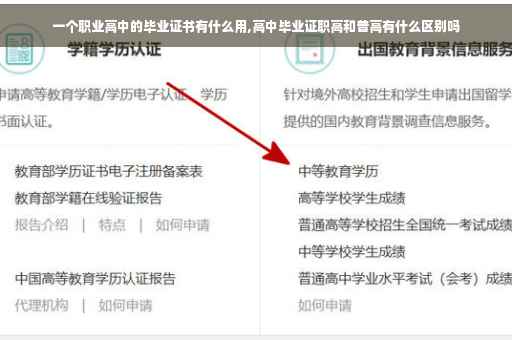 一个是中专性质的,证明你已经有了一门的专业技术,可以进入社会工作了;一个是普高性质的,证明你已经有了进入大学的基础知识。