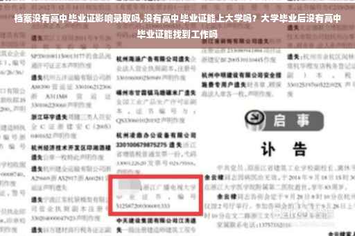 可以肯定的是没有高中毕业证完全是可以上大学的,不论是大专还是本科都是可以上的,只要你参加了高考,有学校录取你。高中毕业证是不影响你以后的工作的。大学毕业证是一定要有的,如果没有大学毕业证,会影响你考研,对你以后找工作也有影响。