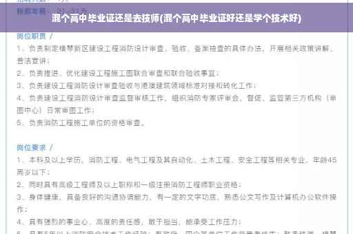 到此,以上对于混个高中毕业证还是去技师的问题就介绍到这了,希望介绍关于混个高中毕业证还是去技师的5点解答对大家有用。