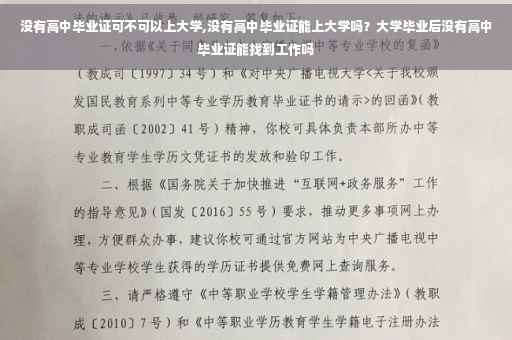 可以肯定的是没有高中毕业证完全是可以上大学的,不论是大专还是本科都是可以上的,只要你参加了高考,有学校录取你。高中毕业证是不影响你以后的工作的。大学毕业证是一定要有的,如果没有大学毕业证,会影响你考研,对你以后找工作也有影响。