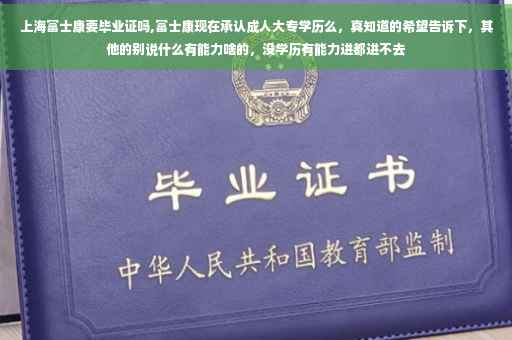 富士康也是需要毕业证的,首先一点,任何一个公司或者工厂工作都是需要员工,有完整的就业经历的,或者说是学业经历,哪怕你是初中生,或说是技校生毕业也需要有一个毕业证才算是一个完整的人是系统,因此,在富士康工作也是需要有一个最高学历的毕业证的