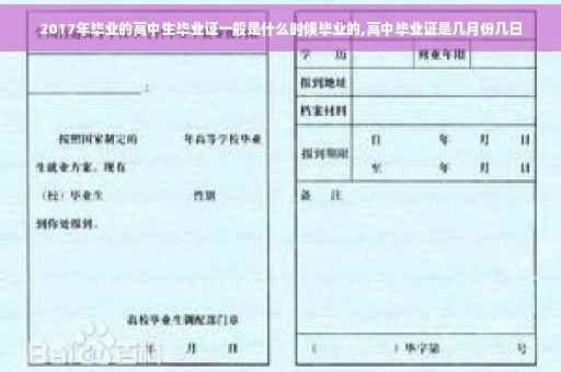 2017年的高中毕业证一般是高考前发,也就是2017年6月初高中毕业。这种安排主要是我们国家的普通高考衔接,国家普通高考一般安排在每年六月份的7、8、9三天,高中学校一般都会在学生高考前夕,安排学生毕业离校,去参加高考。也就是高考前高中学生就毕业了。