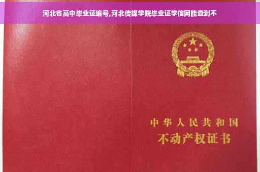 一般格式是“毕字第0000号”或“证书登记XXXXX号”。河北省高中毕业证编号一般格式是“毕字第0000号”或“证书登记XXXXX号” 高中毕业证书上学籍编号是10位数,第一位表示毕业届数,第二、三位表示地、州、市代码,第四位表示各县、特区、区代码,第五、六位为学校代码,最后四位为学生序号。