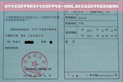不一样。初中毕业证的学号,代表的是初中阶段学习的学生编号,如同年级有150名同学,学号就是从1号到150号。