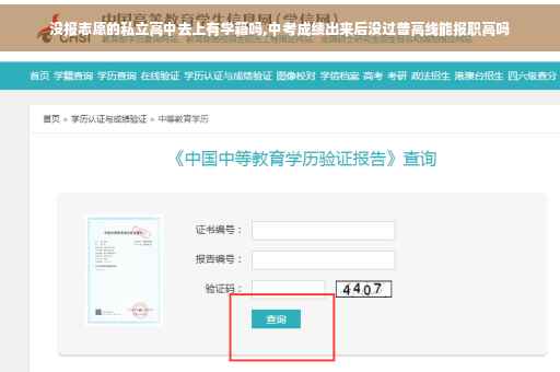 中考成绩出来后没过普通高中最低录取分数线,可以报职业高中的,现在国家规定现在只有55%的初中毕业生可以上普通高中,其他的初中毕业生可以上五年大专,职业高中或职业中专,没有达到高中录取线的不可以就读普通高中,因为没有学籍,没有学藉参加不了高考,也没有高中毕业证书。