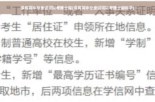 到此,以上对于没有高中毕业证可以考博士嘛的问题就介绍到这了,希望介绍关于没有高中毕业证可以考博士嘛的6点解答对大家有用。