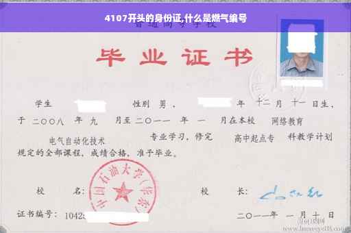 4107身份证说明:4107开头的身份证号码代表出生户口在知城市是河南省新乡市;新乡市的行政代码为410700,身份证开头前6位在410700 - 410799间的,都是新乡市身份证号码。