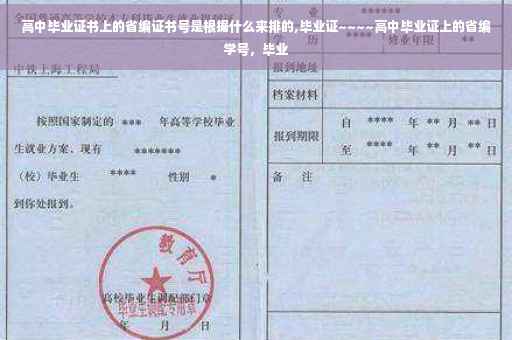 高中毕业证书上的省编证书号编排根据:毕业证编号是学校按照教育部制定的编码规则编制的,共有18位,排列有一定规律:前5位是学校的编号,第6位是教育类型,第7到第10位是毕业年份,第11、12位是教育层次,最后6位是流水号。每年在学生毕业前2到3个月,学校会把毕业学生的名单送交相关部门,每个毕业生会得到毕业证书和相应的证书编号。