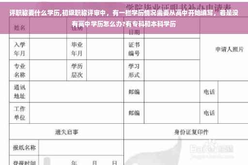 没事没有高中那你肯定有高中同等学力,比如技校学历,中专学历,你填写上去就行了,再说评审职称的时候看的是你的最高学历过完学历你写完都没人看,尤其是初级职称,表格里写啥根本没人关注直接盖章,几个月就发证,没啥大问题,不要看得太严重,放宽心。