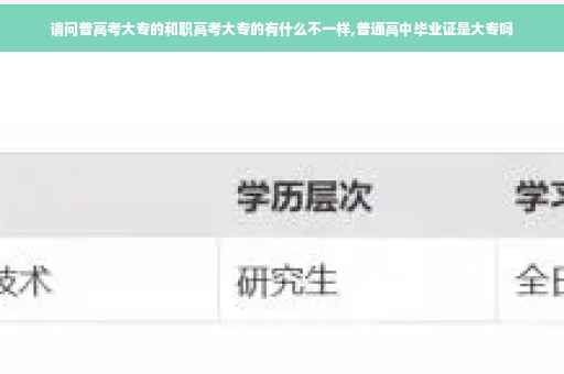 普高学生考取的大专和职高学生考取的大专的不同在于其毕业证不一样,普高学生考取的大专毕业后领取的就是大专毕业证,而职高学生参加考试考取的大专毕业后领取的是高职高专类的专科毕业证。两者在学历和效应上是相等的。