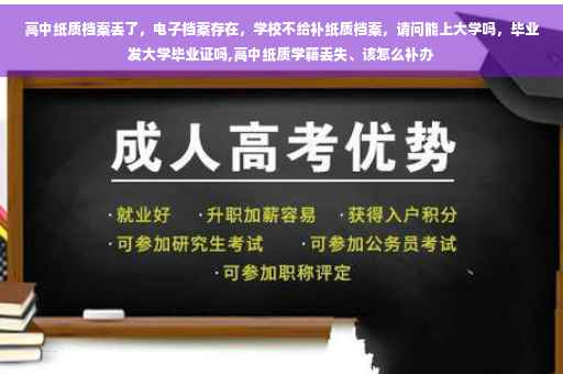 三、正常毕业的高中毕业生都有高中档案(纸质和电子档案),电子版档案通过高招办投档到被录取大学,纸质档案由本人到高中学校领取并在到大学报到时上交学校,纸质高中是大学毕业档案的重要的档案材料。