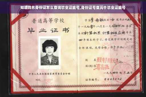 知道姓名身份证要查询毕业证书编号,就要致电给你毕业的大学人事档案室,登录全国毕业证系统查询,把你身份证号码姓名那一年哪一届那一班学生告诉他,学校会清楚查到你本人的毕业证书编号,再就是你原工作单位就有复印件存底,打电话问问也能查到!