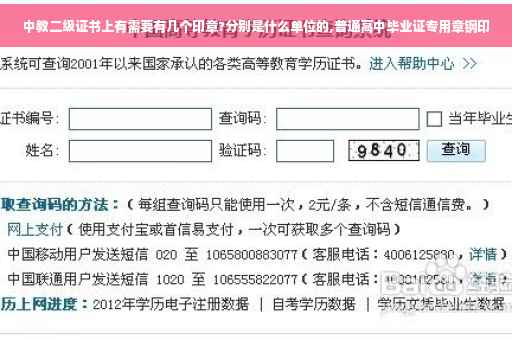 盖章单位。高中毕业证的钢印是由所属市级教育局基教处加盖的,操作上并不需要学生自己去盖,而是由所在高中统一代办的。盖章名称。高中毕业证通常会出现三个章:“高中名称“(普通红印),”校长印“(普通红印),”xx省普通高级中学毕业证 专用章“(钢印,盖在照片处)。