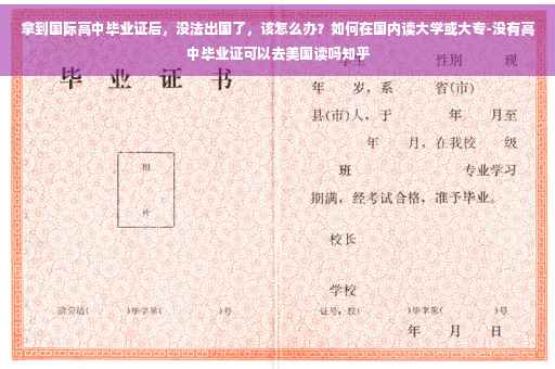 你的情况应该是原来打算在国内上一个国际中学,毕业后去国外留学。但由于某种原因,现在你没法出国了,感到很迷茫。其实你大可不必过于为此事纠结,因为出国留学只是上大学的一种选择而已,你才刚刚中学毕业,人生的路还很漫长,你若想继续在国内上大学,还有多种选择。