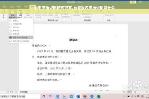 以吉林省为例,常住户口考生普通高考报名条件:1、遵守中华人民共和国宪法和法律;2、高级中等教育学校毕业或具有同等学历;3、身体状况符合相关要求。非常住人口但符合在吉林省报考的条件,除普通高中生外,中等职业教育(中等专业学校、技工学校、职业高中)考生,也可报名参加普通高考。可见高考报名学历证明是高中或高中同等学历。