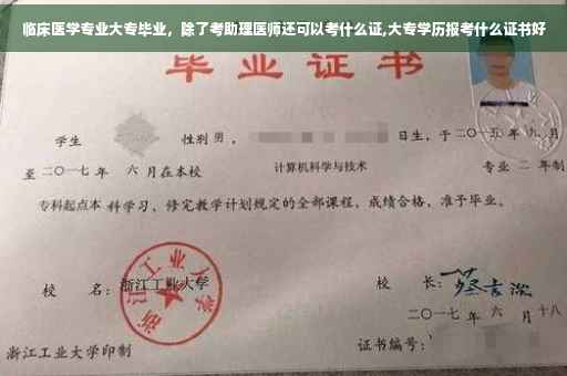 临床医学专业大专毕业,一般都是考助理医师证,然后做相关的工作后在考医师资格证;