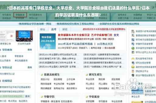 日本大学就跟中国的大学一样,颁发本科学历。 日本的大学院相当于中国的研究生院和博士生院,颁发硕士学历和博士学历。 短期大学招生对象为高中毕业以上,学制2-3年,毕业后获“短期大学士”学位; 高等专门学校招生对象为初中毕业生,学制5年,毕业后获“准学士”学位。 高等专门学校与一般的专门学校不同,一般的专门学校的招生对象须接受过12年教育,学制一般2-3年,毕业后获“专门士”学位。
