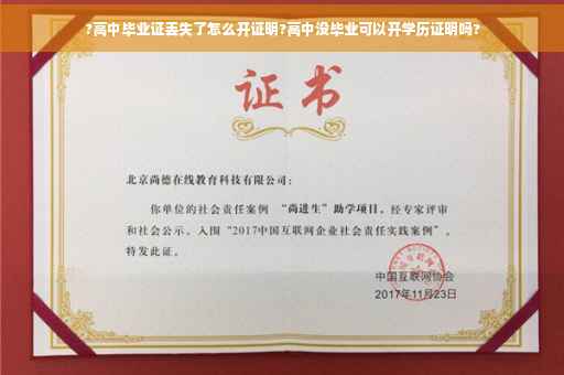 2.一般学校都会对遗失高中毕业证的学生进行补办,如果不行可以到当地教育局开毕业证明。
