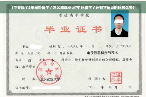 辍学,意思中途因某种情况离开学校。这是中途自愿放弃学业,读了2年半中专课程,离教学大纲要求还差几门课程呢。所以对于毕业证来说,想跟随当年同届的一起拿毕业证书,是不可能的。因为没有完成规定的课程任务,学历没有达到要求。因此是拿不到毕业证的。