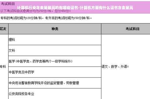 计算机含金量高的证书有:全国计算机等级考试 (NCRE)、计算机技术与软件专业技术资格(水平)考试、全国计算机信息高新技术考试、行业认证、微软认证、思科认证、IBM认证、华为认证。