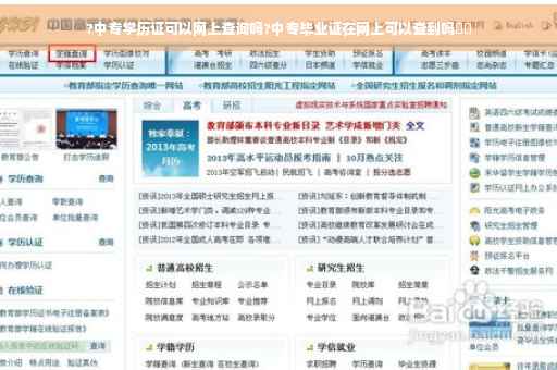 中专文凭无法在网上查询。目前国家唯一指定的查询学历以及学位证的官方网站只提供国家承认的各类高等教育学历证书(含学历证明书)。包括研究生、普通本专科、成人本专科(注册进度)、网络教育(注册进度)、开放教育、高等教育自学考试(注册进度)以及高等教育学历文凭考试(注册进度)等。