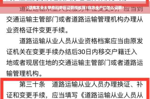 已经办理“农转非”的,出示户口簿即可证明为非农业户口。未办理的,可以找当地公安户籍管理机构查询户口底册档案进行证明为农业或非农户口。