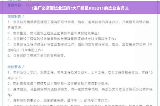 可是有些厂子自动化很高,并且一些机器操作,都是有守则规定的,这类的厂子是需要你的毕业证,他们并不是要你的毕业证,只是需要看看你真实学历。是否能够胜任工作岗位。
