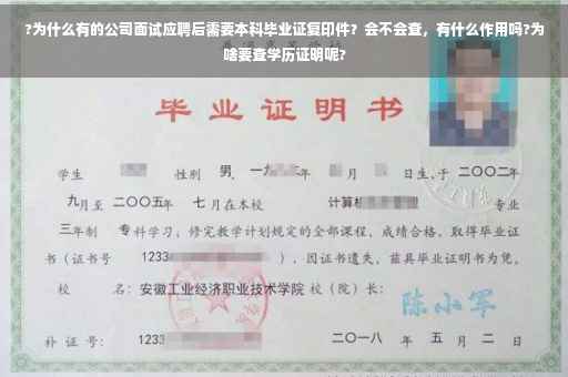 申请高新技术企业的公司,需要中高级人才达到一定的比例,员工毕业证即是证明资料之一。当你知道自己已经获得了这个职位,公司需要将你的本科毕业证复印件作为档案留底。