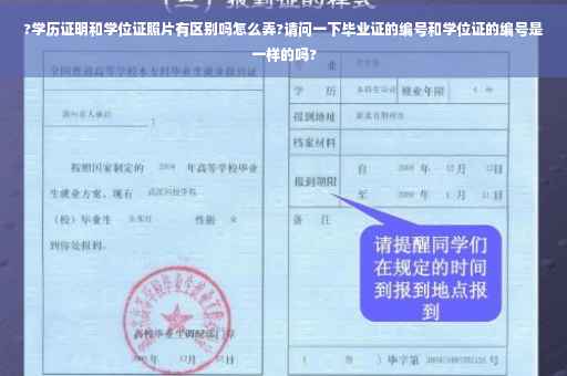 学历证书编号和学位证书编号是不一样的,因为学历证书和学位证书就不是一样东西。学历证书是学制系统内实施学历教育的学校或者其他教育机构,对完成了学制系统内一定教育阶段的学习任务的受教育者所颁发的文凭,是学业证书的主体之一,在数量上占学业证书的大部分。主要有小学毕业证书、中学毕业证书、高中毕业证书、中等专业学校毕业证书、大专毕业证书、本科毕业证书、硕士毕业证书、博士毕业证书等等。学位证书,又称学位证为了证明学生专业知识和技术水平而授予的证书,在我国学位证授予资格单位为通过教育部认可的高等院校或科学研究机构。 获得学位意味着被授予者的受教育程度和学术水平达到规定标准的学术称号, 经在高等学校或科学研究部门学习和研究,成绩达到有关规定,由有关部门授与并得到国家社会承认的专业知识学习资历。 比如你在一个大学修完该修的学分,所有成绩及格,你就可以拿到该学校的毕业证。但是学位证是在所有成绩的及格的基础上,有更高的要求。目前我国大部分学校都会要求学分绩点达到2.0(通常即加权平均分为70分)以上才能被授予学士学位,否则只能拿到毕业证。有些学校有特别要求,比如若出现考试作弊的行为,毕业时只能拿到毕业证,不能授予学士学位。